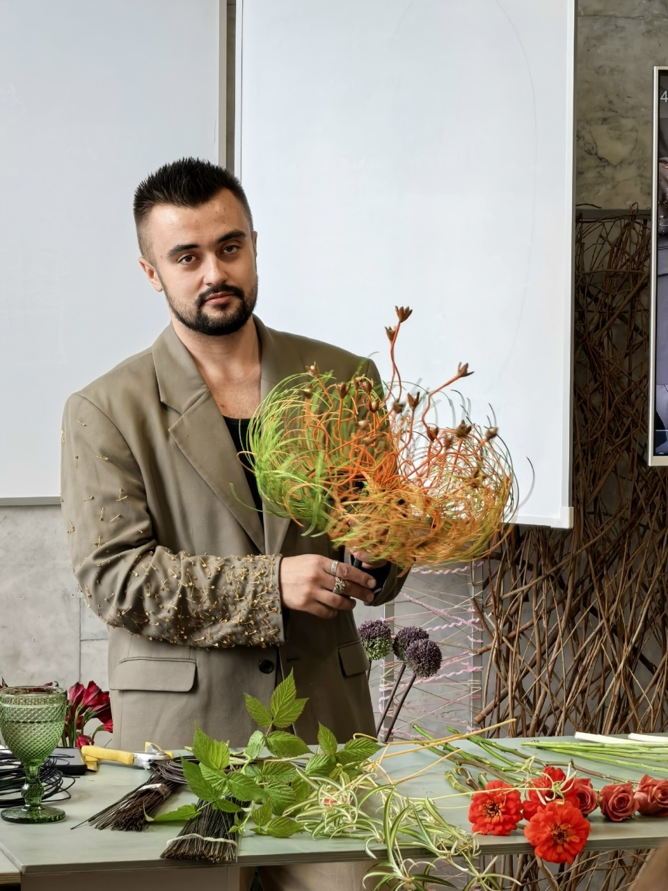🎯 Работа с материалами: Синтез классических флористических техник и инновационных материалов — прозрачный бетон, гибкий камень, светящиеся нити, экопластик.